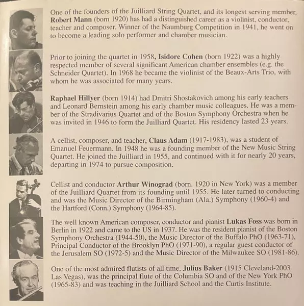 | Artiste | Wolfgang Amadeus Mozart | Juilliard String Quartet | Lukas Foss | Julius Baker |