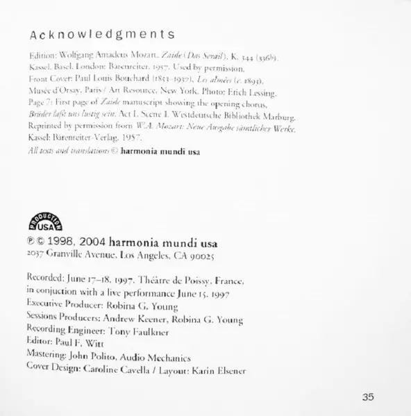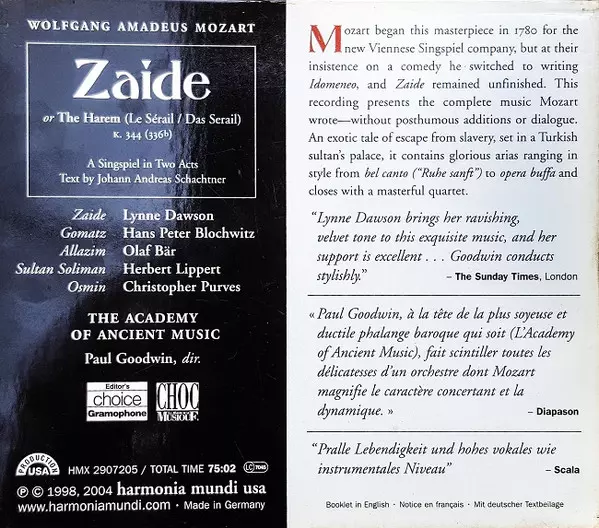 | Zaide K. 344 ) (Or The Harem (Le Sérail / Das Serail, 336b, A Singspiel In Two Acts) | 75:02 min |