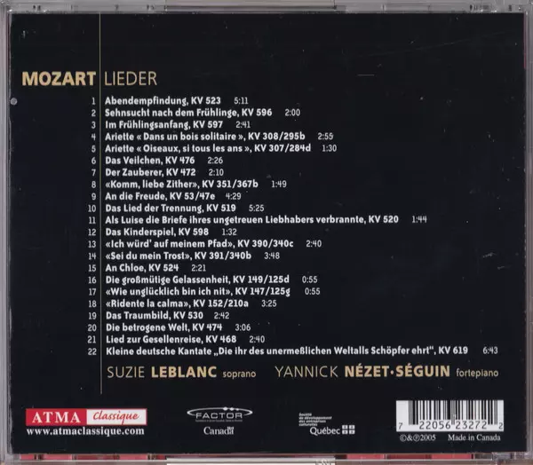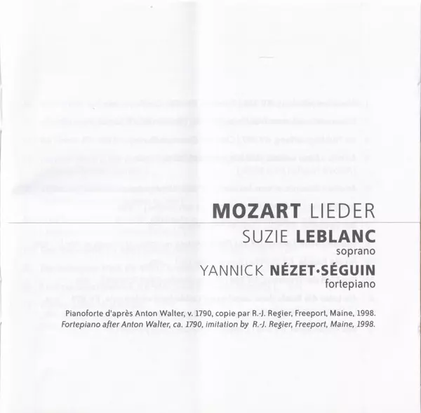 | Artiste | Wolfgang Amadeus Mozart | Yannick Nézet-Séguin | Suzie LeBlanc |