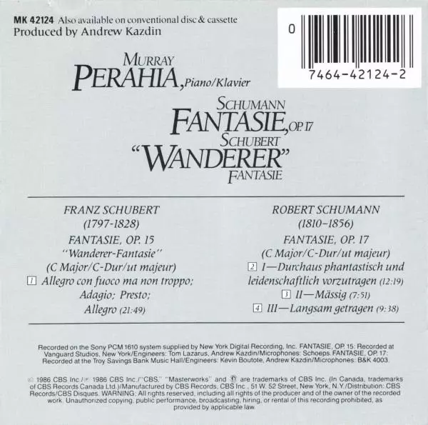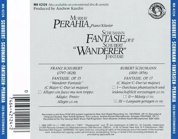 Artiste | Franz Schubert | Robert Schumann | Murray Perahia |