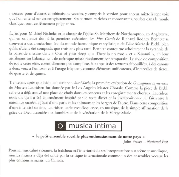 | Artiste | Musica Intima |