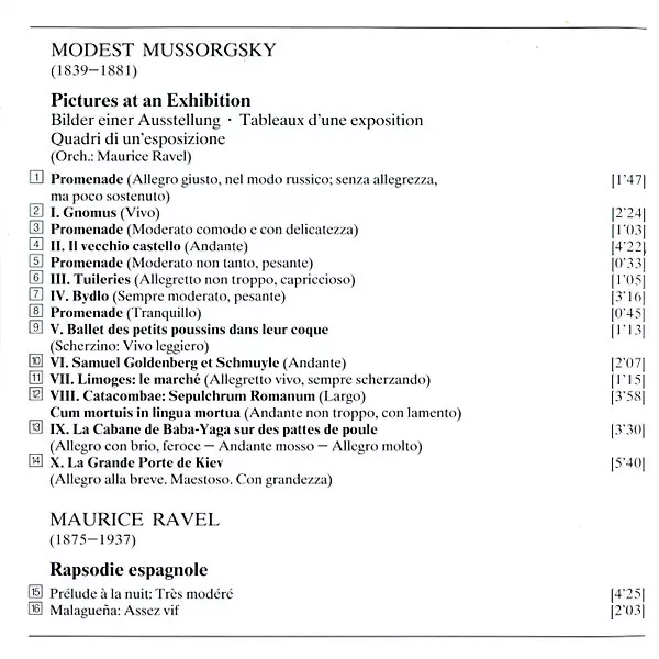| Titre | Mussorgsky: Pictures At An Exhibition, Ravel: Rapsodie Espagnole - La Valse |
