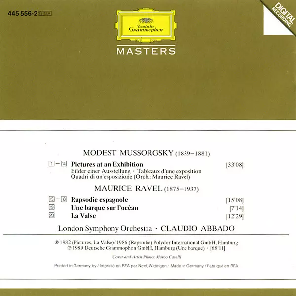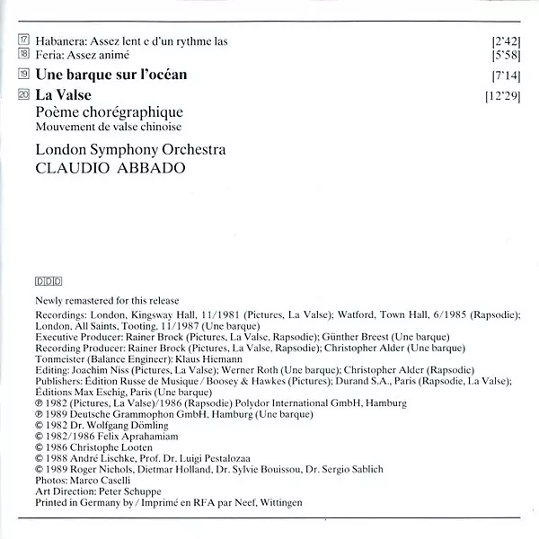 | Artiste | The London Symphony Orchestra | Maurice Ravel | Claudio Abbado | Modest Mussorgsky |
