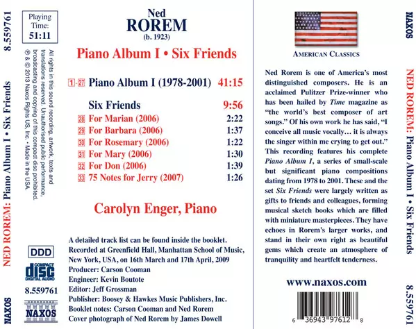 | Artiste | Ned Rorem | Carolyn Enger |