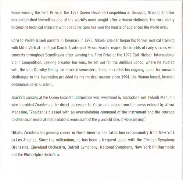 Nikolaj Znaider is a renowned Danish-Israeli violinist and conductor, celebrated for his virtuosic technique and profound musicality. Born in Copenhagen in 1975, Znaider began playing the violin at an early age and quickly emerged as a prodigious talent. He gained international rec...