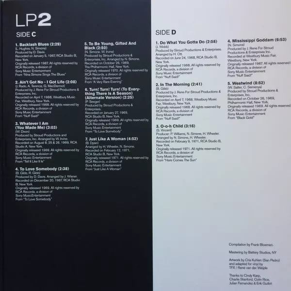 Nina Simone: Sunday Morning Classics La version sur Le vinyle 2LP en Norme édition. Cette édition particulière a été publiée en L'Europe dans la maison d'édition Sony Music En collaboration avec Columbia Le 4 mai 2018.