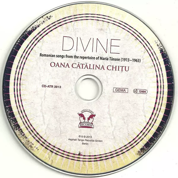 Oana Cătălina Chițu: Divine - Romanian Songs From The Repertoire Of Maria Tănase (1913 - 1963) La version sur CD en Norme édition. Cette édition particulière a été publiée en Allemagne dans la maison d'édition Asphalt Tango Records Le 31 mai 2013. Album couvre tous les genres Pop, Folk, World, & Country, Vocal, Folk et Chanson.