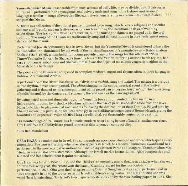 | Titre | Yemenite Songs = Shiri Timon |