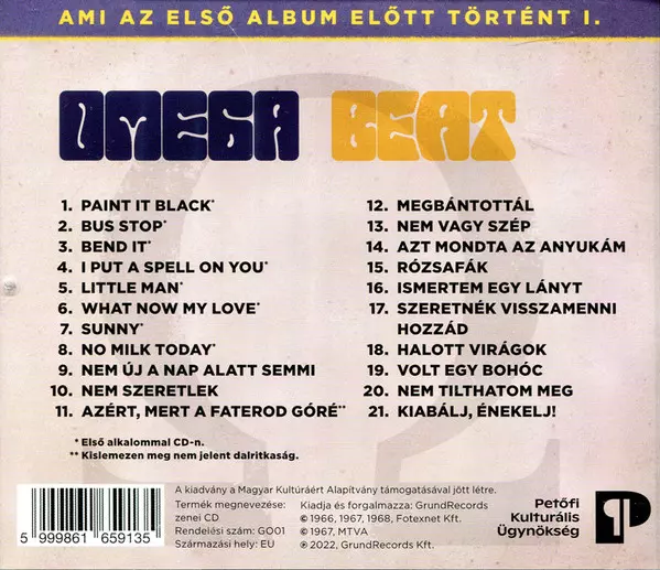 Omega: Beat La version sur CD en Norme édition. Cette édition particulière a été publiée en Hongrie dans la maison d'édition GrundRecords Le 15 août 2022. Album peut être classé dans un genre Rock.