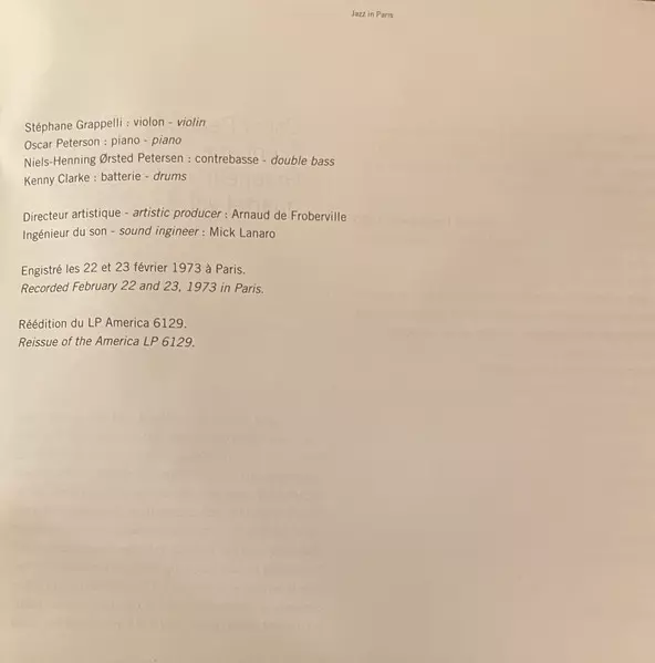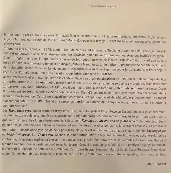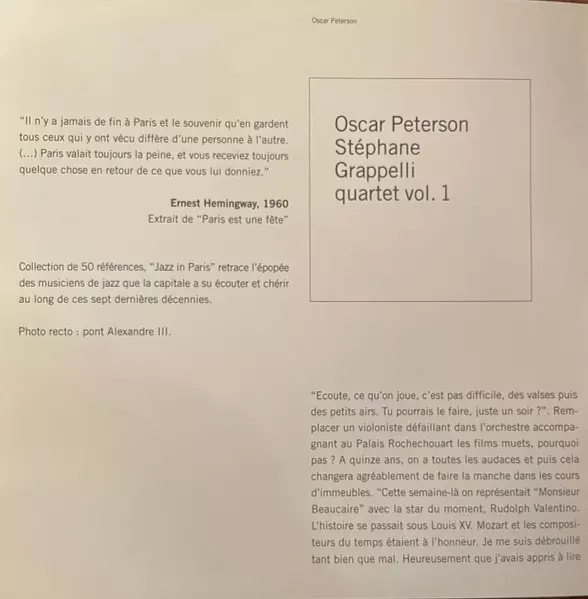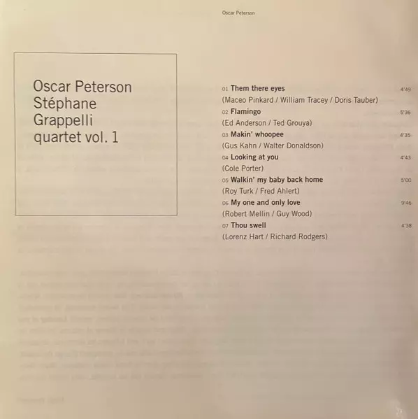 | Titre | Oscar Peterson - Stéphane Grappelli Quartet Vol. 1 |