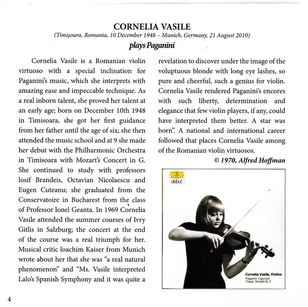 | Artiste | Niccolò Paganini | Cornelia Vasile |