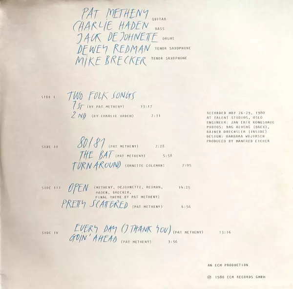 | Artiste | Pat Metheny | Charlie Haden | Jack DeJohnette | Michael Brecker | Dewey Redman |