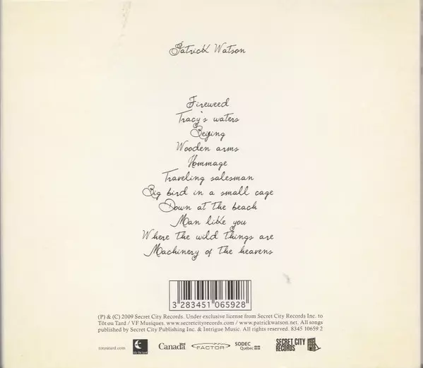 Banjo, Electric Guitar Simon Angell | Bass Mishka Stein | Cello Annie Gadbois | Drums, Percussion Robbie Kuster | Harp Sarah Pagé | Viola Ligia Paquin | Violin Mélanie Bélair, Mélanie Vaugeois | Vocals Patrick Watson