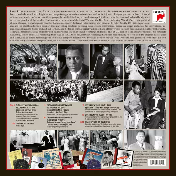 Paul Robeson: Voice Of Freedom La version sur 14CD/Coffret en Remasterisé édition. Cette édition particulière a été publiée en Dans le monde entier dans la maison d'édition Sony Classical En collaboration avec RCA Red Seal Le 30 août 2024. Album couvre tous les genres Musique classique, Scène et écran, Folk, World, & Country, Folk et Spirituals. His Complete Victor And Hmv Recordings.