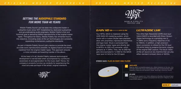 | Plus d'informations sur les disques vinyles | Numbered Hybrid SACD Mobile Fidelity |