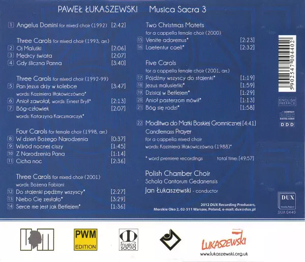 Artiste | Polski Chór Kameralny Schola Cantorum Gedanensis | Jan Łukaszewski | Paweł Łukaszewski |