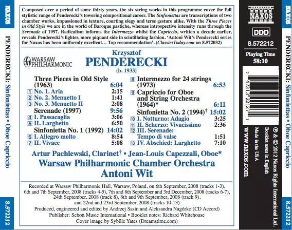 Artiste | Krzysztof Penderecki | Antoni Wit | Warsaw Philharmonic Chamber Orchestra | Artur Pachlewski | Jean-Louis Capezzali |
