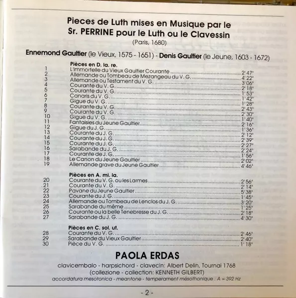 | Titre | Pieces Pour Le Luth Ou Le Clavecin Mises En Musique Par Le Sr. Perrine, Paris 1680 |
