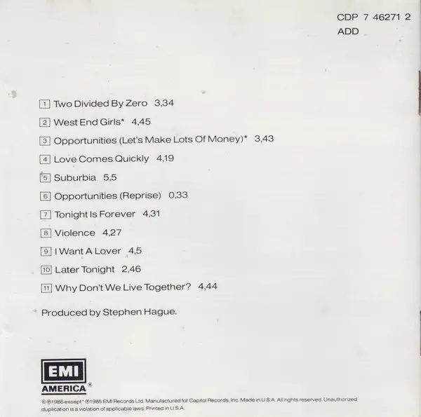 | Plus d'informations sur les disques vinyles | 1987 US Pressing (EMI America) |