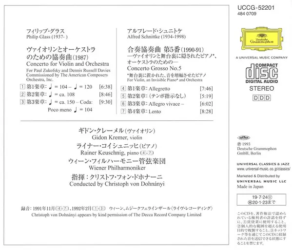 | Artiste | Wiener Philharmoniker | Philip Glass | Gidon Kremer | Alfred Schnittke | Christoph von Dohnányi |