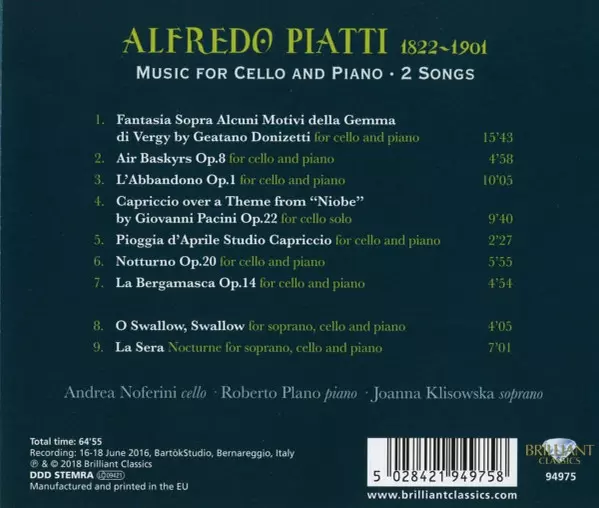 | Titre | Music For Cello And Piano; 2 Songs |