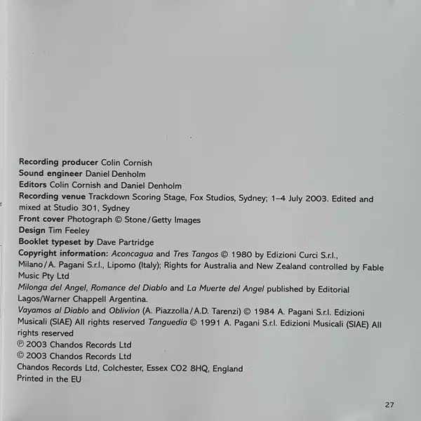 | Artiste | Astor Piazzolla | Richard Tognetti | Australian Chamber Orchestra | James Crabb |
