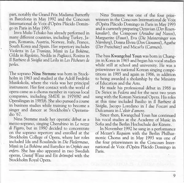 | Artiste | Placido Domingo | Inva Mula | Nina Stemme | Kwangchul Youn | Eugene Kohn | Les Musiciens De L'Opera, Paris | Ainhoa Arteta |