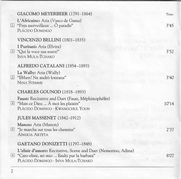 | 1 | Placido Domingo: L'Africaine: Aria "Pays Merveilleux … Ô Paradis" (Vasco De Gama) | 3:45 min | |