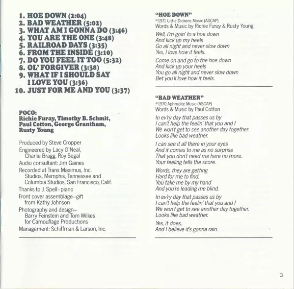 Poco is an American country rock band that formed in 1968 after the breakup of Buffalo Springfield. The original lineup included Richie Furay, Jim Messina, Rusty Young, George Grantham, and Randy Meisner. The band was part of the early country rock movement and was significant in f...