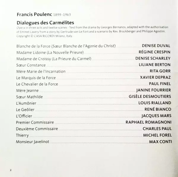 | Dialogues Des Carmélites, Opera, FP 159 | ||