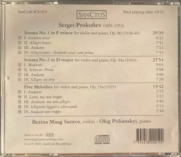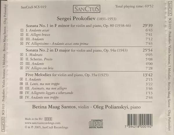 Sonatas For Violin And Piano , 5 Melodies - CD
