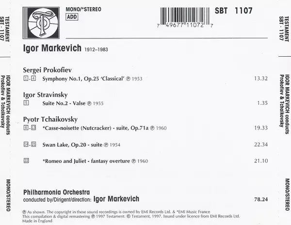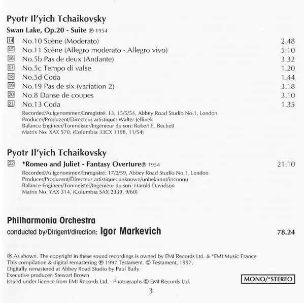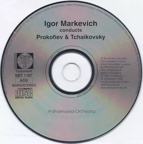 | Artiste | Pyotr Ilyich Tchaikovsky | Philharmonia Orchestra | Sergei Prokofiev | Igor Markevitch |
