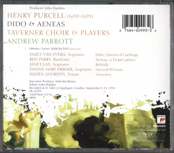 | Artiste | Henry Purcell | Andrew Parrott | Taverner Players | Taverner Choir | Ben Parry | Emily Van Evera |