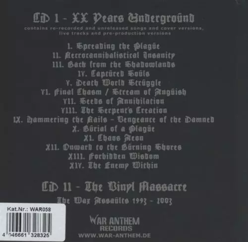 Purgatory: XX (20 Years Underground) LTD La version sur 2CD en Limité édition. Cette édition particulière a été publiée en Allemagne dans la maison d'édition War Anthem Records Le 20 janvier 2014. Album couvre tous les genres Rock et Death Metal. Digibook.