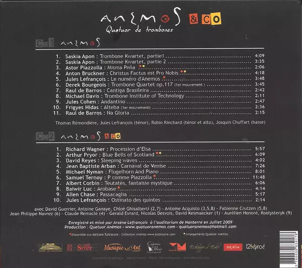 Quatuor Anémos: Anémos & Co La version sur 2CD en Norme édition. Cette édition particulière a été publiée en France dans la maison d'édition Indesens Le 25 mai 2011. Album couvre tous les genres Musique classique et Musique de marche.
