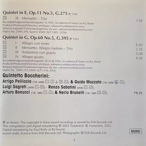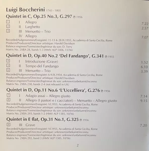 | Artiste | Luigi Boccherini | Quintetto Boccherini |