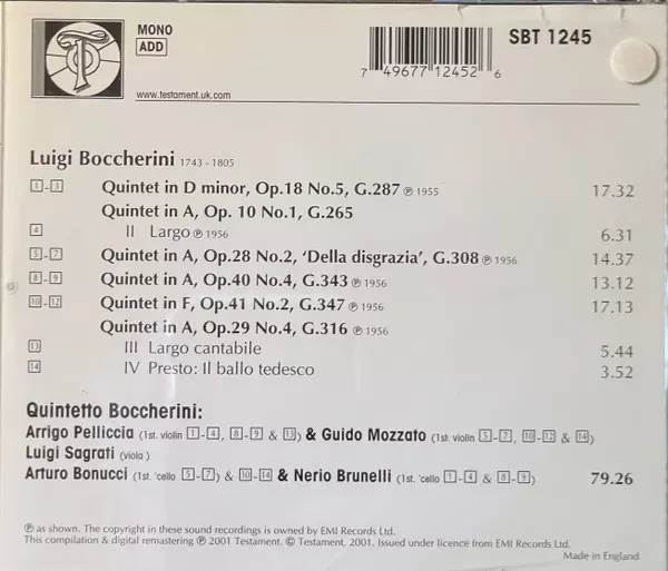 | Artiste | Luigi Boccherini | Quintetto Boccherini |