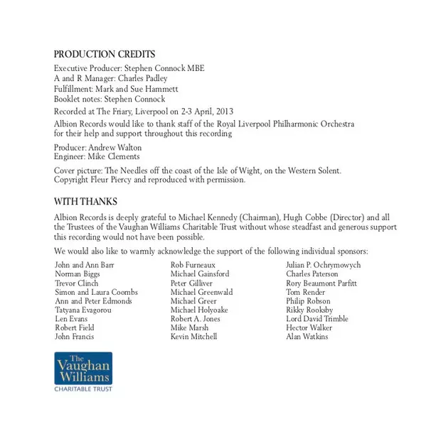 | Artiste | Ralph Vaughan Williams | Royal Liverpool Philharmonic Orchestra | Andrew Kennedy | Paul Daniel | Roland Wood |