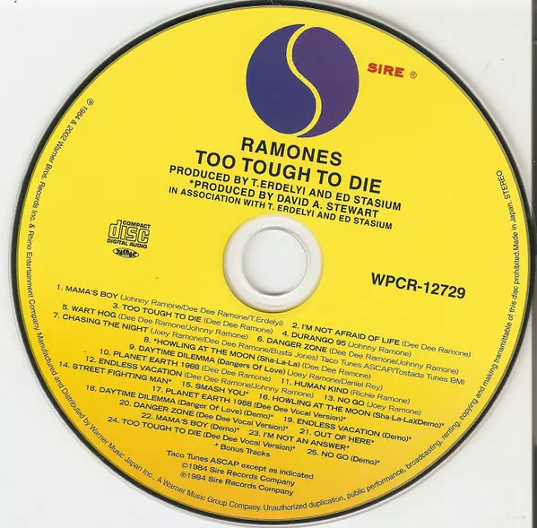 Ramones: Too Tough To Die = トゥー・タフ・トゥ・ダイ La version sur CD en Remasterisé édition. Cette édition particulière a été publiée en Japon dans la maison d'édition Sire Le 5 octobre 2007.