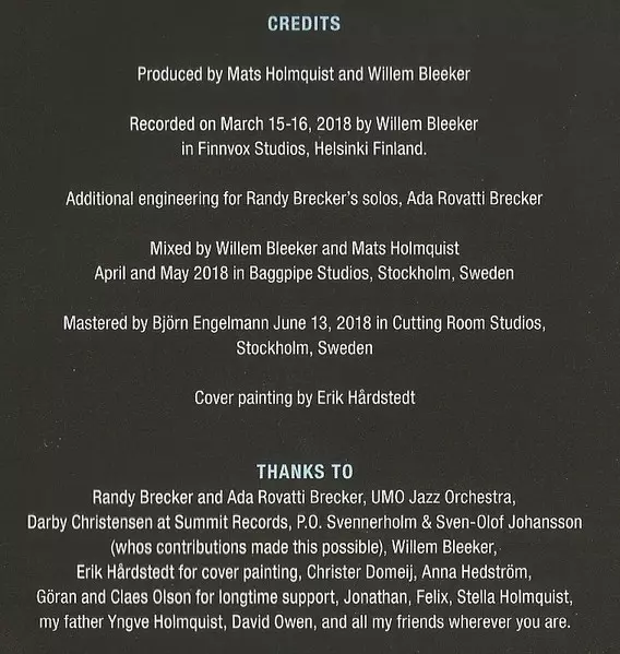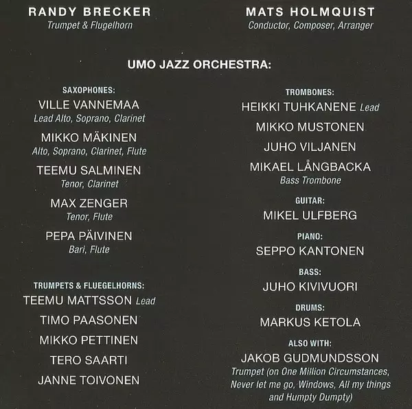 | Artiste | Randy Brecker | Umo Jazz Orchestra | Mats Holmquist |