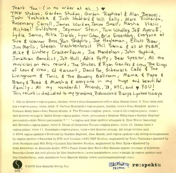 | Artiste | Regina Spektor |