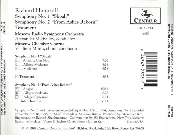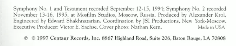| Titre | Symphony No. 1 • Symphony No. 2 • Testament |
