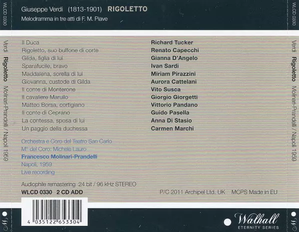 Artiste | Giuseppe Verdi | Richard Tucker | Renato Capecchi | Francesco Molinari-Pradelli | Orchestra Del Teatro Di San Carlo | Gianna D'Angelo | Coro Del Teatro Di San Carlo |