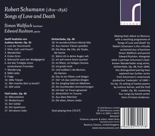 Artiste | Robert Schumann | Edward Rushton | Simon Wallfisch |