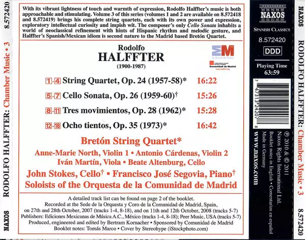 | Artiste | Orquesta De La Comunidad De Madrid | Rodolfo Halffter | Cuarteto Bretón | John Stokes | Francisco José Segovia |