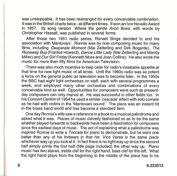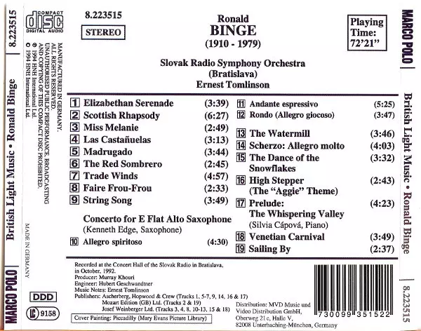 | Artiste | Slovak Radio Symphony Orchestra | Ernest Tomlinson | Ronald Binge |