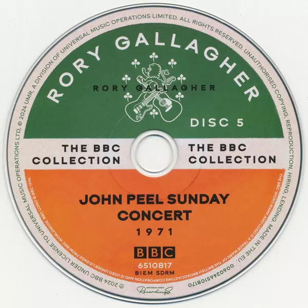 Rory Gallagher: The BBC Collection DLX La version sur 18CD/Coffret/2Blu-ray en deluxe édition. Cette édition particulière a été publiée dans la maison d'édition Universal Music Recordings En collaboration avec BBC Le 18 octobre 2024. Album couvre tous les genres Rock, Blues et Blues-Rock.