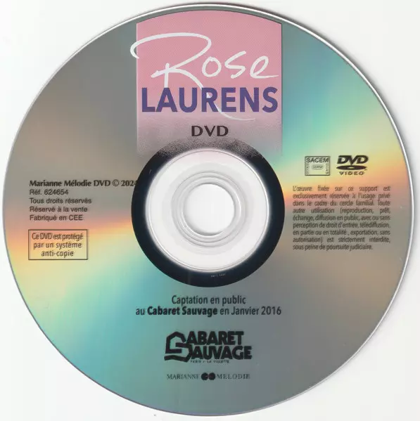 Rose Laurens: Rose Laurens Au Cabaret Sauvage 2016 La version sur DVD en Norme édition. Cette édition particulière a été publiée en France dans la maison d'édition Marianne Mélodie Le 16 février 2024. Album peut être classé dans un genre Pop.