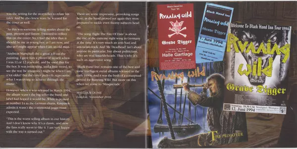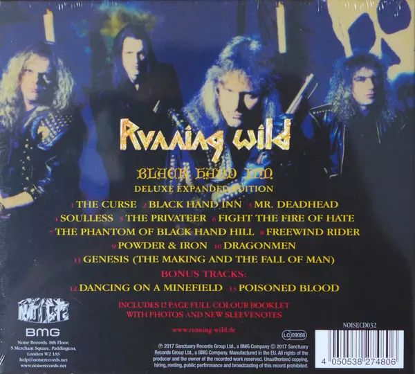 Remastered deluxe reissue of German heavy metal classic with two bonus tracks. The eighth album by German heavy metal quartet Running Wild was released in 1994 and was a loose concept album about a resurrected man who foresees Armageddon against a backdrop of piracy. With eleven tracks that collectively last over an hour, "Black Hand Inn" appear...