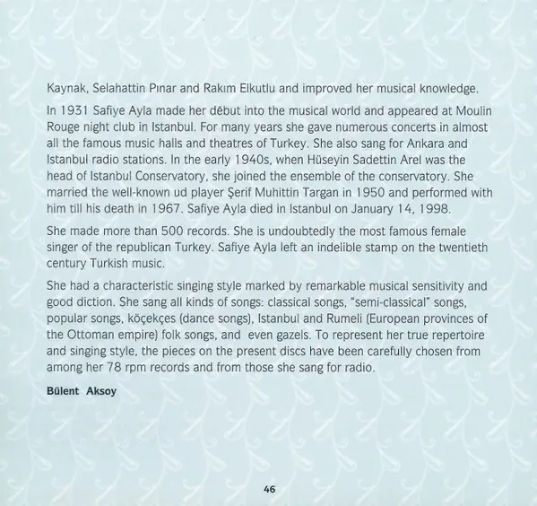 Safiye Ayla: Safiye Ayla La version sur 2CD en Norme édition. Cette édition particulière a été publiée en Turquie dans la maison d'édition Kalan Le 2 avril 2015. Album couvre tous les genres Folk, World, & Country et Vocal.